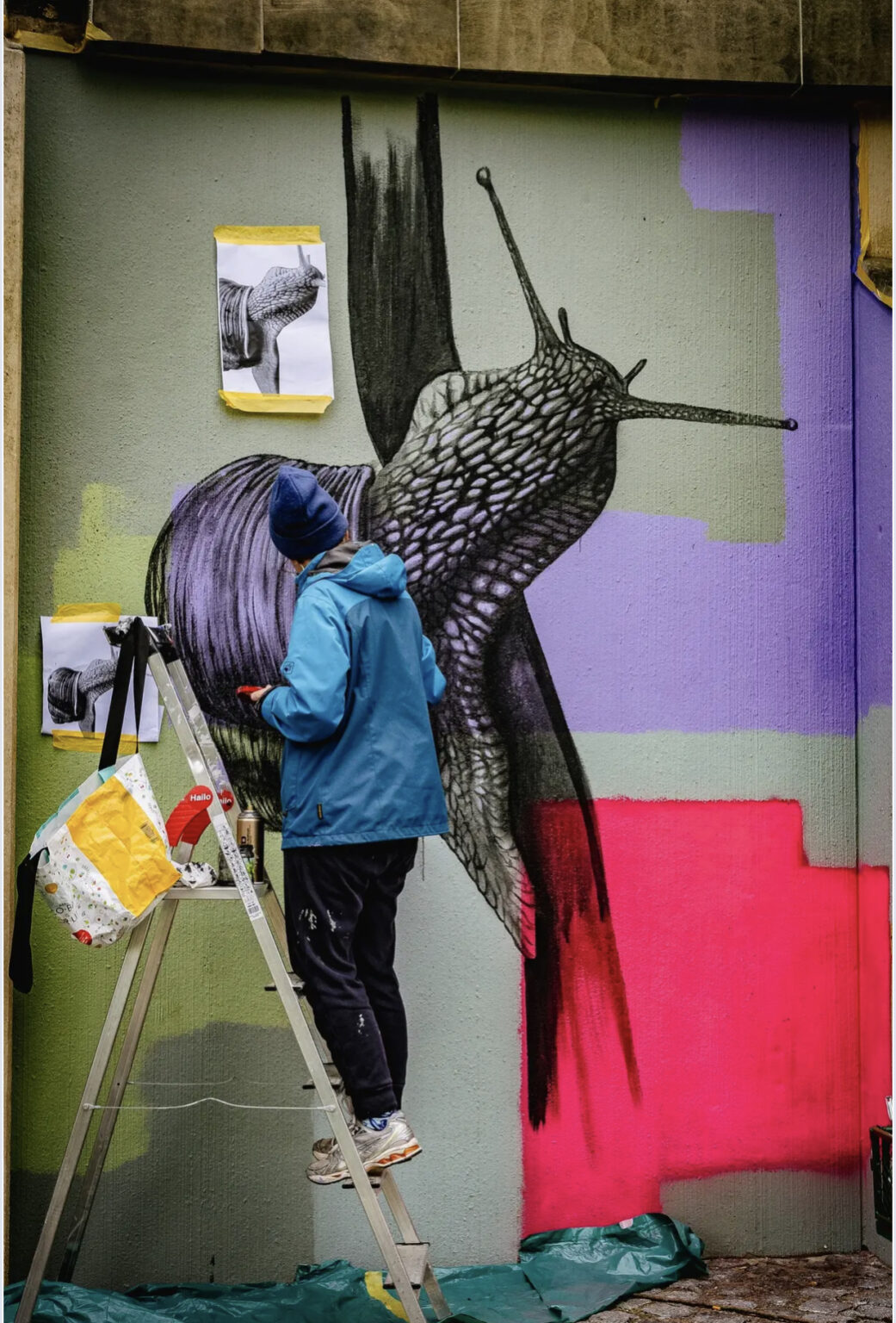The Project Twocans was originally founded in 2022 by graphic designer and painter Daniel Mamer, and costume designer Martine Koetz. Two different painting techniques were mixed, showing large color fields with detailled characters and creatures. The focus of the work lies in the often contradictory relation between nature and humankind. Scaling things up or down and making the invisible visible, is one of the main topics of this project. While Daniel’s specialties were the rough outlines, blurred and expressive color structures, Martine took on the conception and the ‘naturalistic’ paintwork.